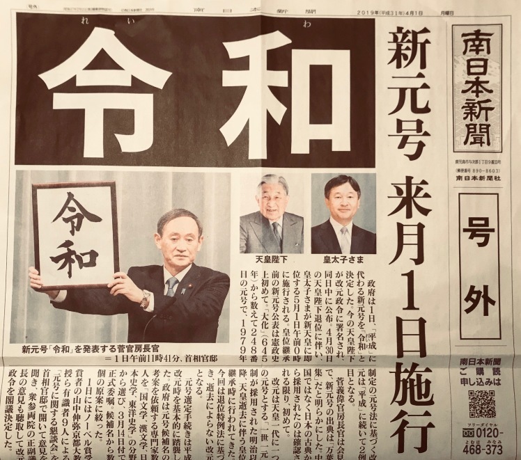 今日は、新元号の発表がありましたね。