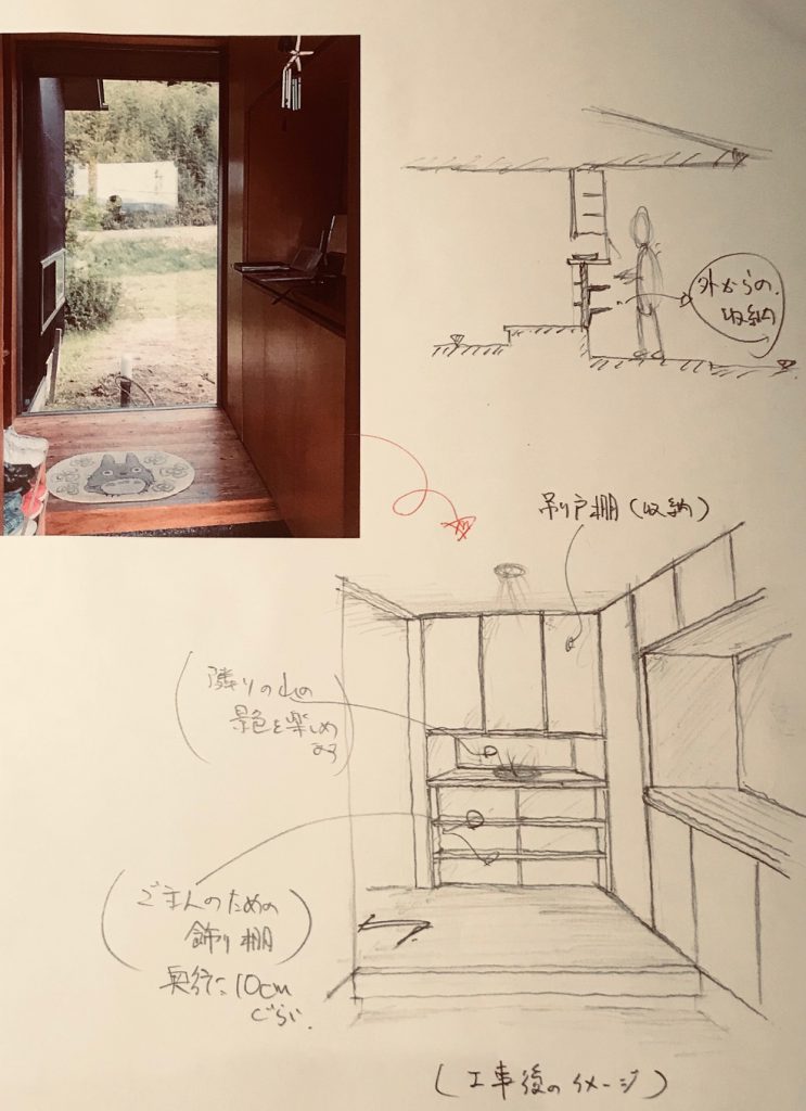 さて先日は、お客様の家で玄関周辺の収納の件で打合せ!