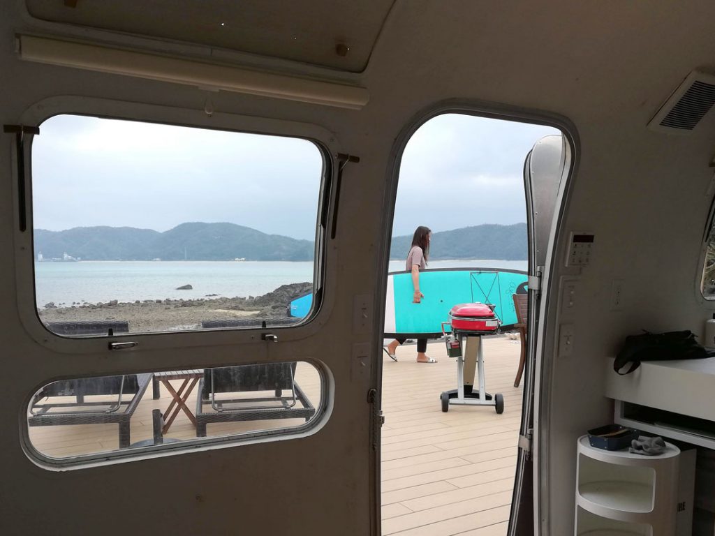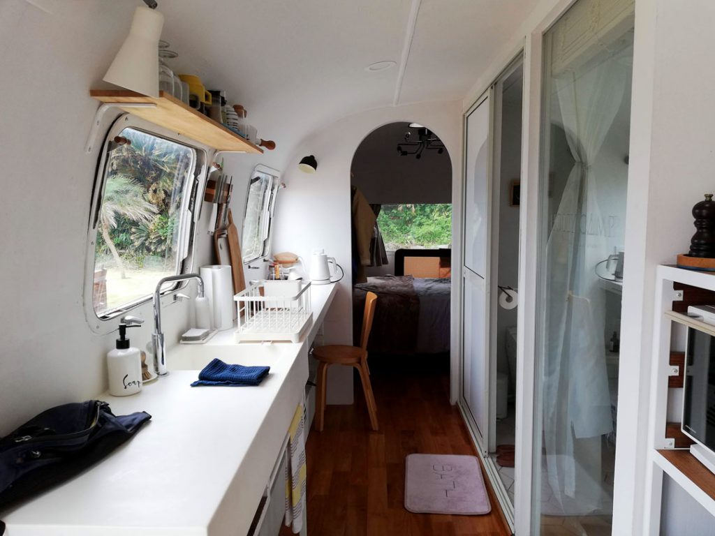 私が奄美大島で宿泊したのは〈HOLLY CAMP〉。手間なし・準備なしでキャンプが楽しめると話題の“グランピング”が体験できる施設です。ここの目玉が、1970年製のキャンピングトレーラー「AIRSTREAM」に泊まれること!
