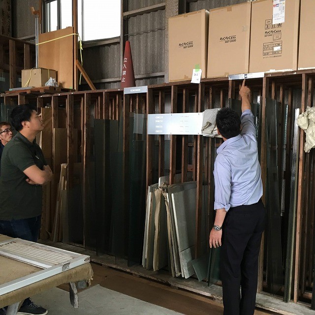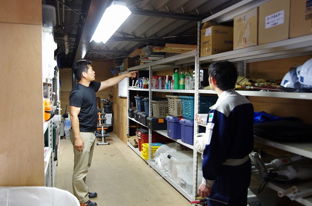 こちらの協力業者さんも、昔から5Sには積極的に取り組んでいる会社(サッシ・住宅設備業者)。ここでも社内をグルグルとパトロールして社長が懸命に説明をしてくれました。真剣に話を聞くテクニカルの日置。しっかり学べたかな?