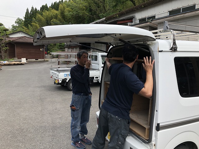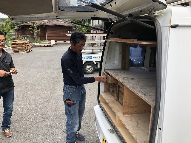 「これいいね~」「この道具なに?どこで買ったの?」「上に積み重ねてますね~」「この車内、カイゼンのしがいがありますね」「これどんな仕組み?」・・・なーんて意見交換中。