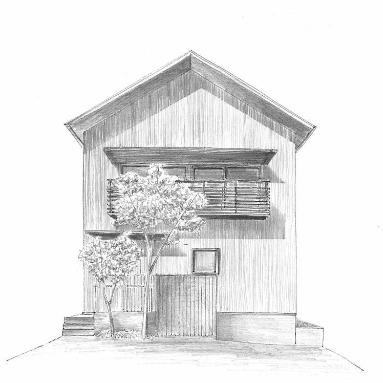 ちなみに、こちらは計画段階のスケッチ。当初からこの大小の植栽のイメージがありました。