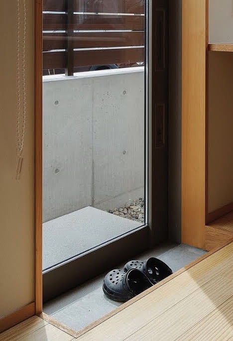 そんなときのお助けアイデアです。スリッパ分のミニ土間スペースを作ってしまう。これ、いかがでしょう。外に出て、中に入る。そんな当たり前のことだけれど、いつも綺麗な状態のスリッパにうふふ。となってしまいそうですね。