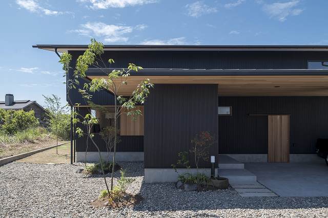 「雨に濡れずに玄関へ入ることができる」ようにする方法はほかにもあります!軒を広くだしたり、敷地次第では通り抜けることができる「車寄せ」という考え方もありますね。