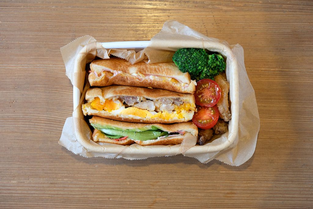 テクニカル 上塘さんのお弁当。おしゃですね。「でもこれ、実はホットサンドじゃないんですよ 笑」って、いいのよ、おしゃれなんだから。