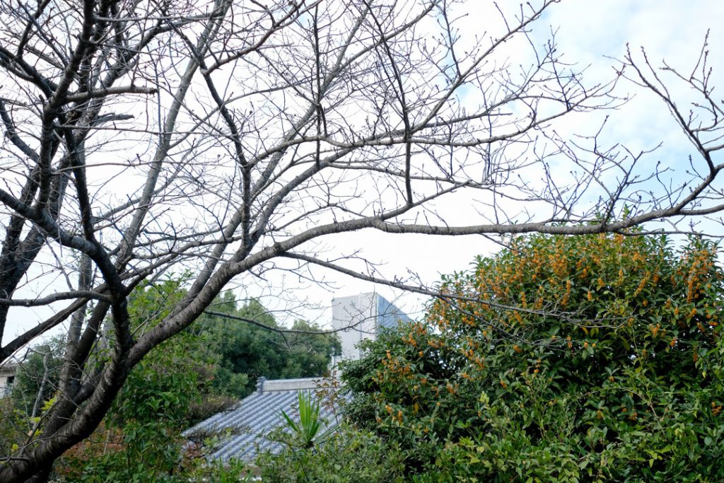 K様邸のお庭には、隣家から大きな桜の木が迫ってきています。さらに隣家には金木犀も植わっており、なんとも言えない甘い香りが秋の空気を作り出していました。「お隣さんに恵まれているな」と思ったら、奥様のご実家でした 笑。春になったらお庭でお花見をするのだそう。贅沢ですよね。