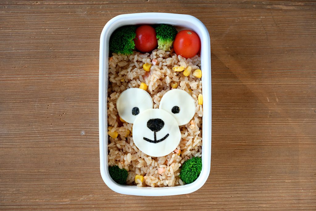 ハイッ!そしてこれは私。広報 塚本は鮭とコーンの炊き込みご飯。前回の「ミニオンズ」は惨敗に終わりましたが、今回の「ダッフィー」はどうでしょう?だいぶキャラ弁ぽくなってきてません!?