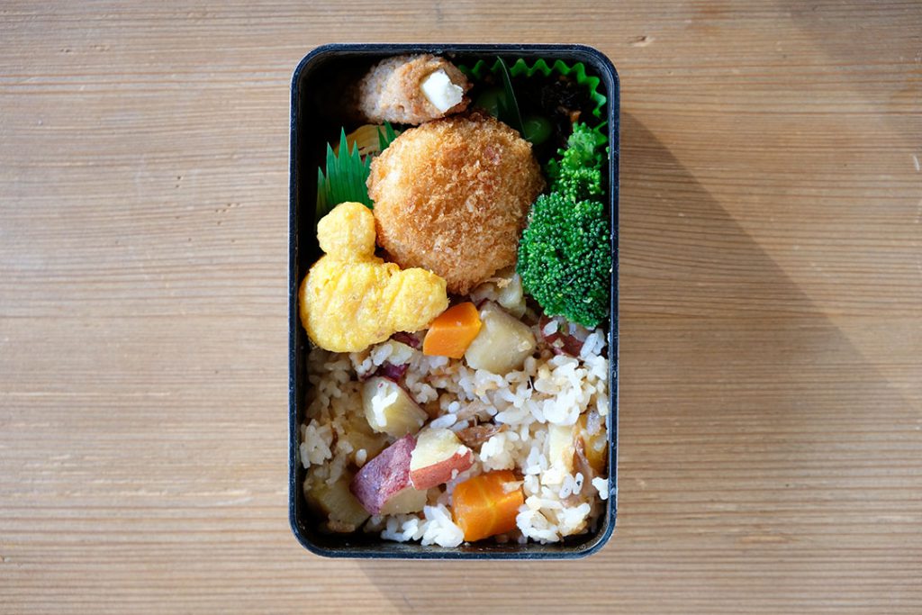 アフター担当 坂元さんの炊き込みご飯はさつまいもとニンジン、鶏肉で具だくさんですね!彩りのミッキーが、まさかのディズニーかぶり。