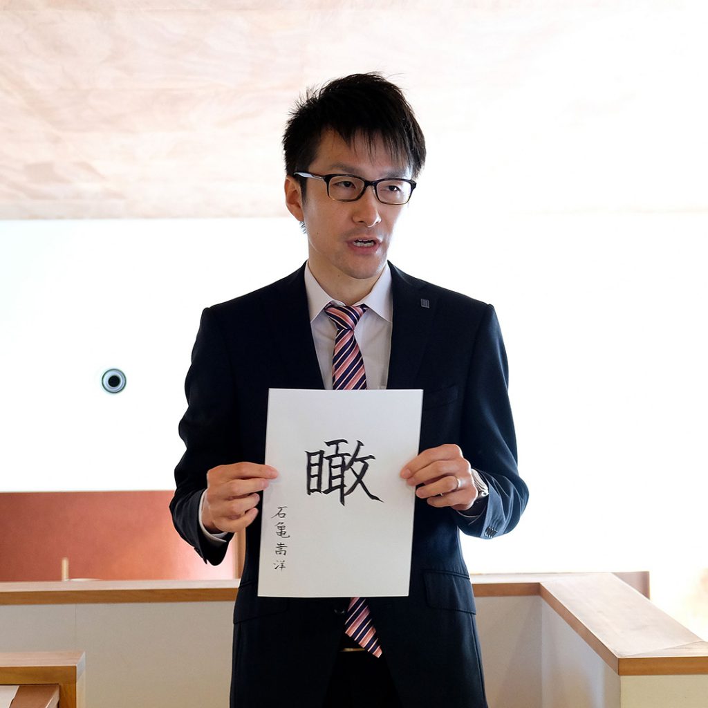 広く見渡すの意。目の前のことのみならず、全体を見て、どう動くかを意識して仕事したい。