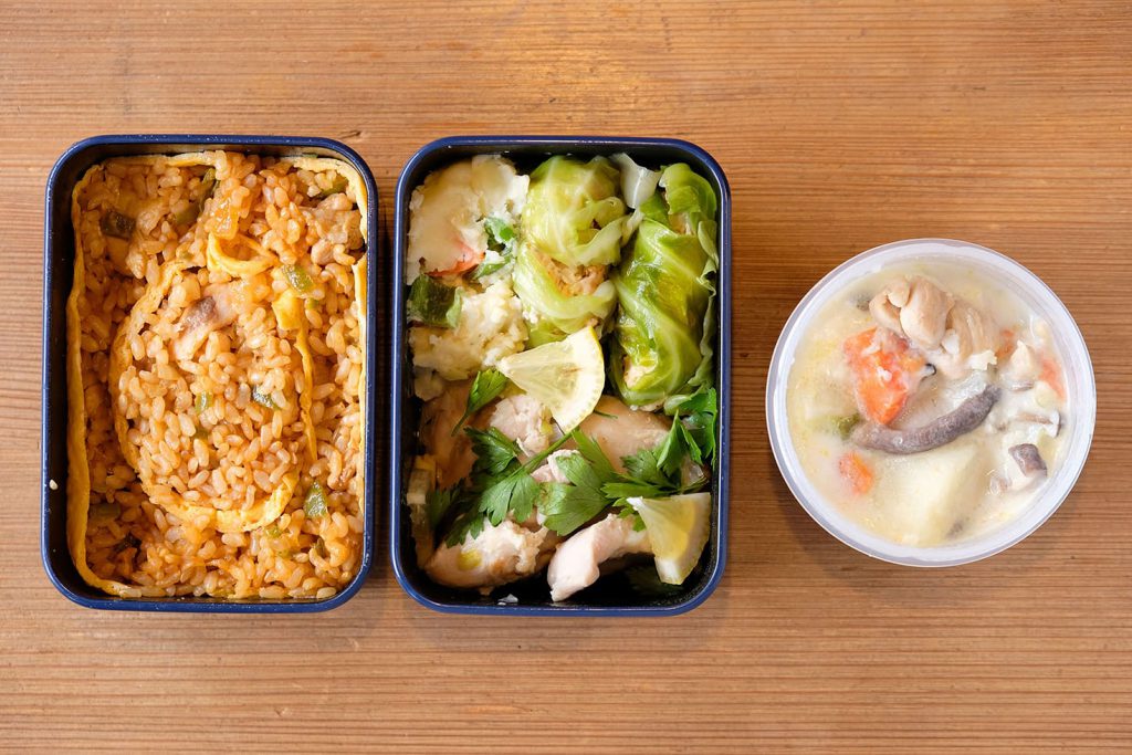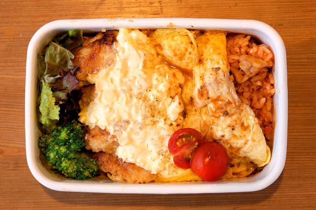 ディレクター垣本さんのお弁当は、今回カブり気味の(失礼)チキン南蛮とオムライスを大胆に盛り付けた男前弁当。日置さんのもですが、個人的にはこういうのが1番食欲そそります。