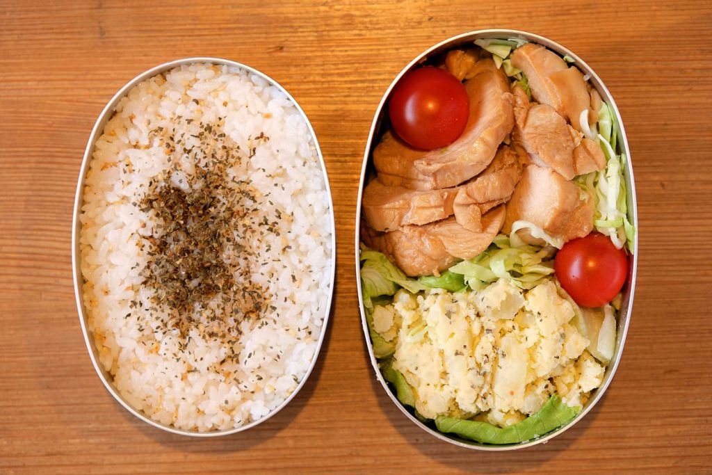 まずは、まだ優勝のない男性陣のお弁当から!テクニカル石亀さんは鶏の照り焼きにポテトサラダ。本人の人柄がにじむ、シンプルでソリッド(?)なお弁当です。