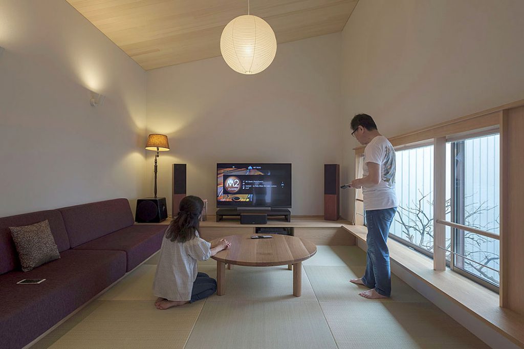 家を「小さく」収めるには、いろいろな間取りの工夫が必要です。基本は、部屋の役割を「兼ねる」こと。その代表例が、リビングに和室を隣接させることです。