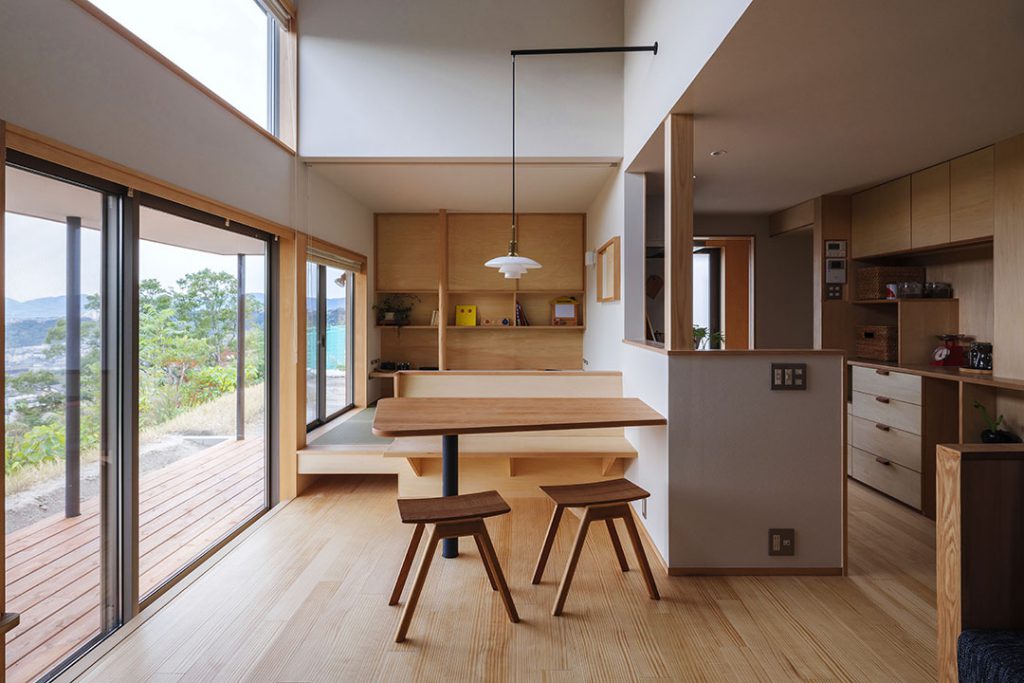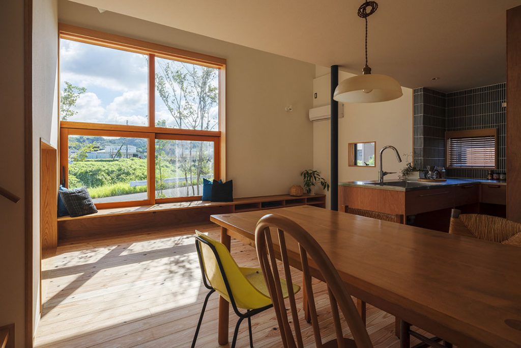 山道でトンネルを抜けて、パッと視界がひらけるあの感覚です。こうした視覚効果も利用することで、小さいけど大きく暮らす家を実現します。