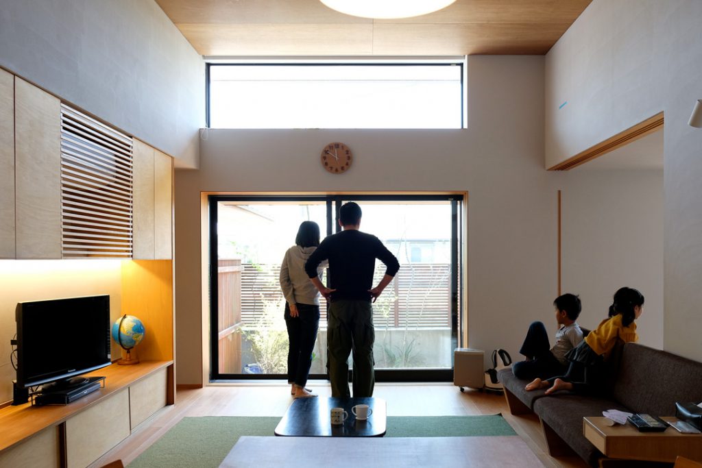 築3年のUさま邸。ご夫婦と、小学3年生の男の子、年長さんの女の子の4人暮らしです。小学校、幼稚園、職場へのアクセスがよい場所。その分、住宅が多く、外からの視線には配慮が必要な立地でした。