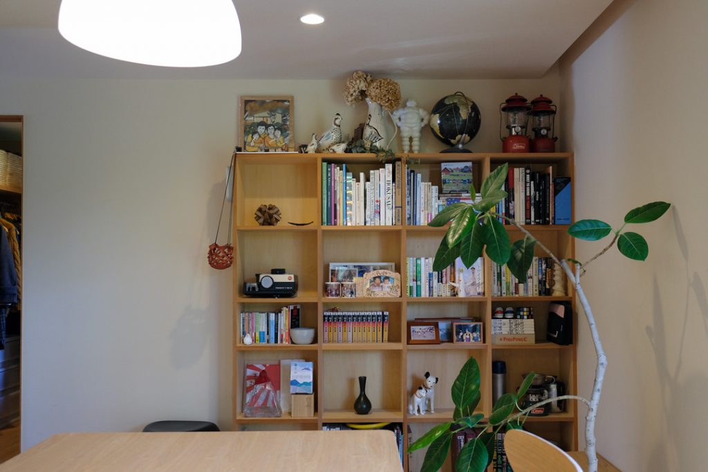 気になる収納については、ご夫婦としては十分、とのこと。リビングには大きな造作の本棚があり、お二人の本と家族の思い出が飾られていました。子ども室に関してはちょっと不安が。