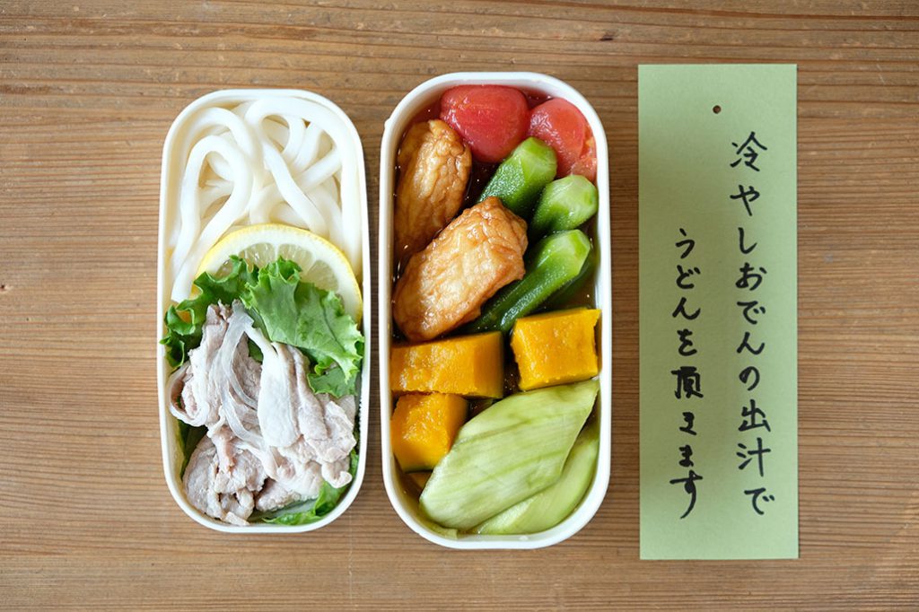 はいはい、分かったから!でも確かに、うどんまで付くと弁当感が増していい感じですね!