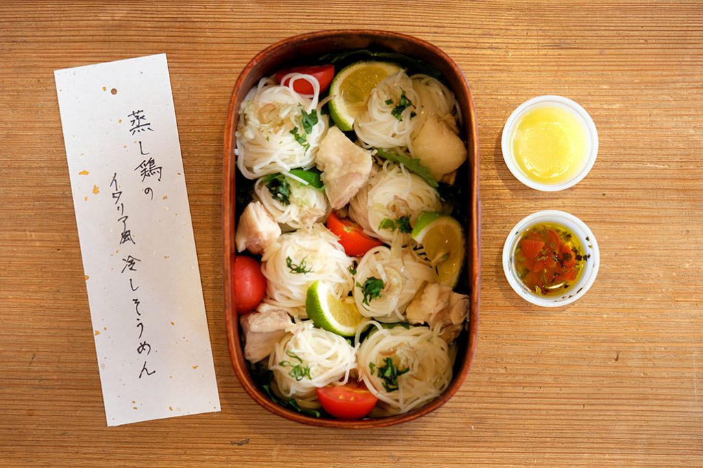 ややこいな〜イタリア風だし。でもライム添えてあって涼やかさありますね。涼味は基本冷製だから、「冷めても美味しい」がうれしいお弁当と相性いいのかも?