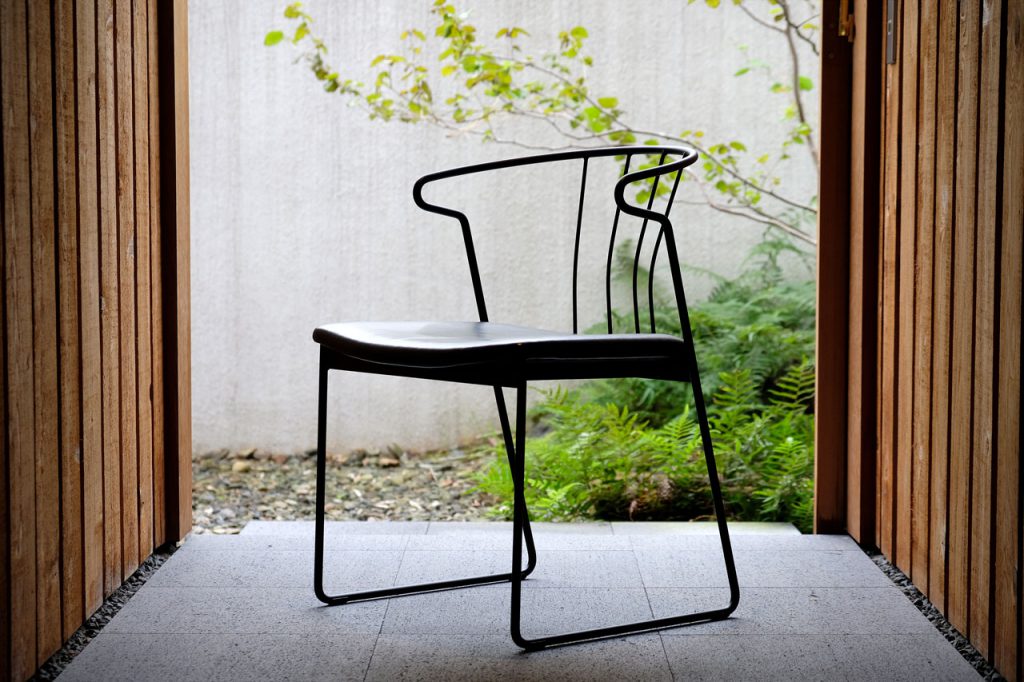 続いて<felice(フェリーチェ)>について。「felice」は岐阜県にある鉄の専門家集団・杉山製作所と手がけたチェアです。村澤氏と鉄職人が試行錯誤を重ね、10型もの試作品をつくってたどり着いた究極の一脚と言われています。鉄を曲げる、つなぐ、塗る、というそれぞれのよさを最大限に引き出し、「細身で軽いデザイン」を心がけたそう。
