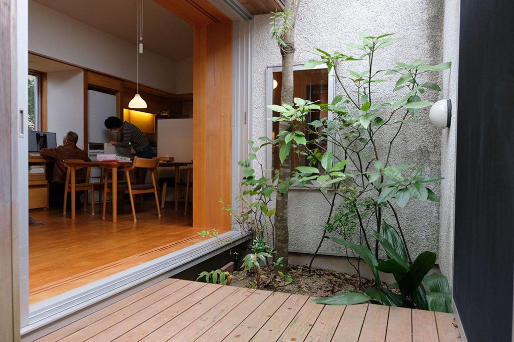 「中庭から光が入って明るいし、住宅街なのに緑をのんびり眺めていられる。嬉しいですね」とご主人。