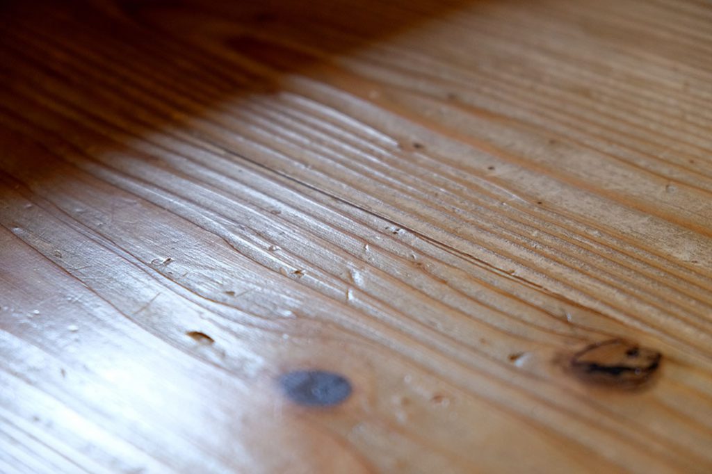 そして、木の空間づくりで忘れてはならないのが“無垢の床材”です。Tさま邸は杉板張りで、10年の年月の中で艶を増していました。