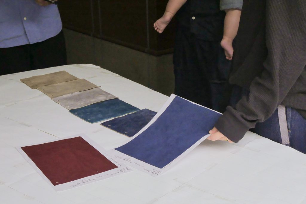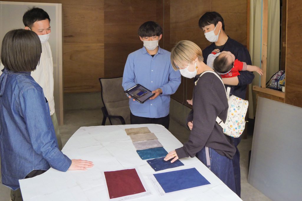 生地は、実際の生地の見本をHさまご家族に触ってもらい、爪をたててみたり、水をかけてみたりすることで機能性を体験してもらいました。