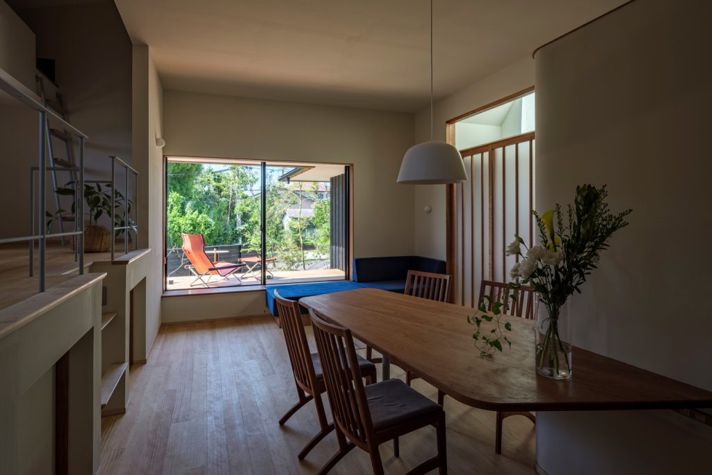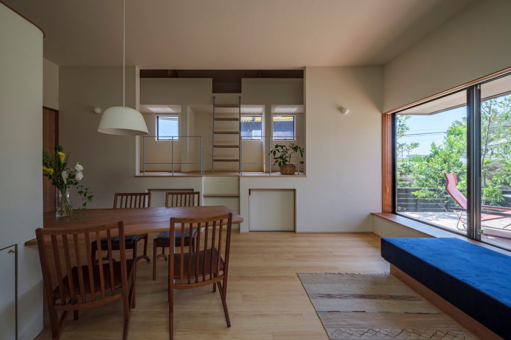 完成後、Hさま邸を訪問したとき、ちょうどご家族がダイニングテーブルで過ごされており、この空間が家族のよりどころとして機能していることを感じました。猫も喜んでくれているようで、西側の窓で日向ぼっこをしたり、子どもたちとソファでお昼寝をしたりしているエピソードなどをお聞きして、改めてHさま邸を担当できたことを嬉しく思いました。
