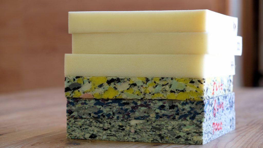 そのため、表面には耐久性が高く柔らかいウレタン、その下に軽いウレタン、さらにその下に密度の高い重いウレタンを重ねるなど、密度の異なるウレタンを組み合わせるのが一般的です。