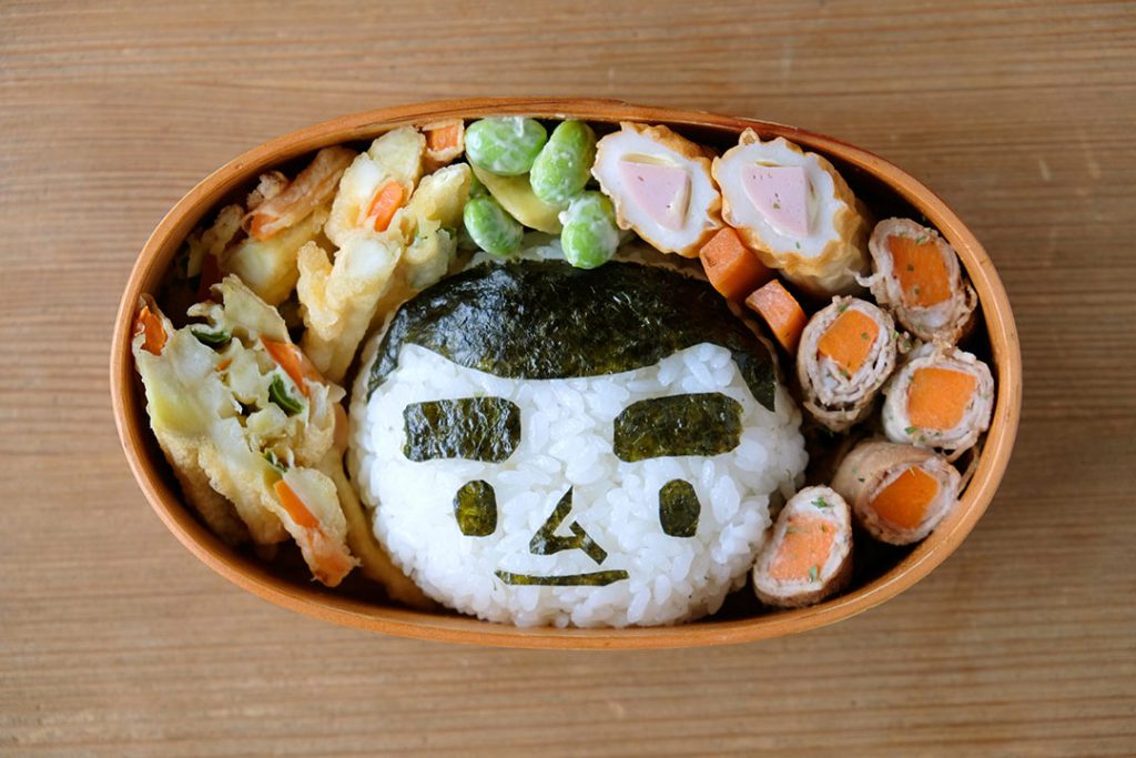 続いては私、広報 塚本のお弁当。今回のキャラは、凛々しい太眉の「西郷どん」です!自信作だったのですが、