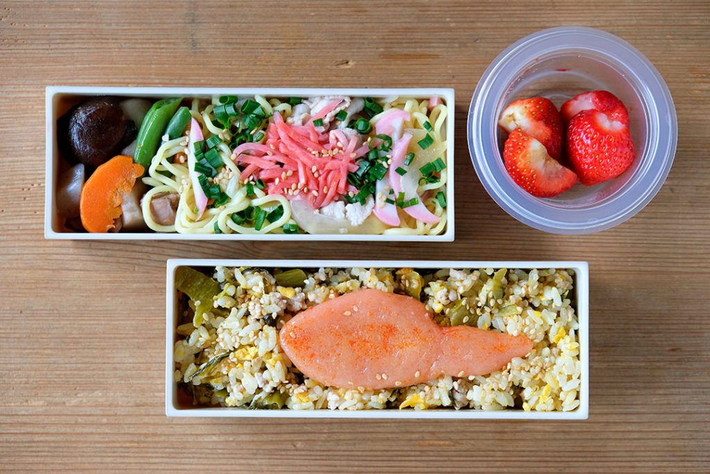 ディレクター垣本さんは鹿児島出身だけど、第二のふるさと福岡弁当。高菜チャーハンに明太子、焼きラーメンの炭水化物まつり!そんで、エンゲル係数高くない?