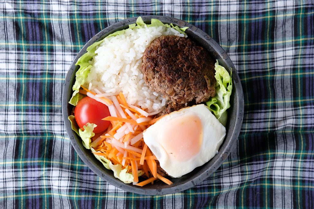 岩手県盛岡出身のテクニカル石亀さんはロコモコ弁当!なぜ?って思いました?実は、岩手県は「びっくりドンキー」発祥の地なんですって!そんなわけでハンバーグ。市販のお肉を包丁で叩いてミンチにしたこだわりのひと品です。