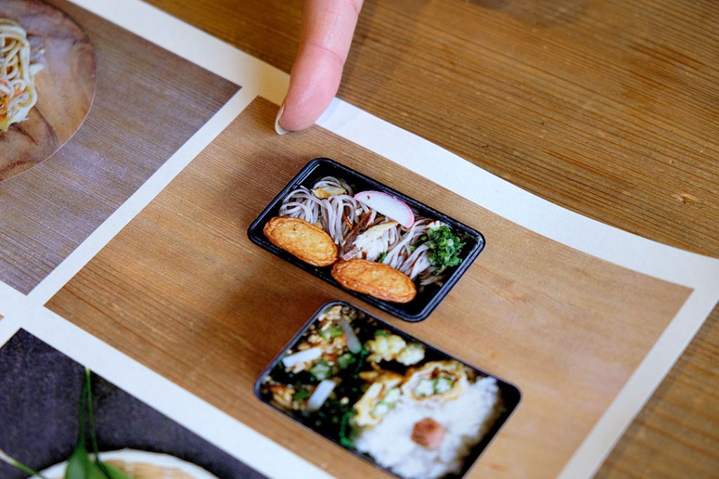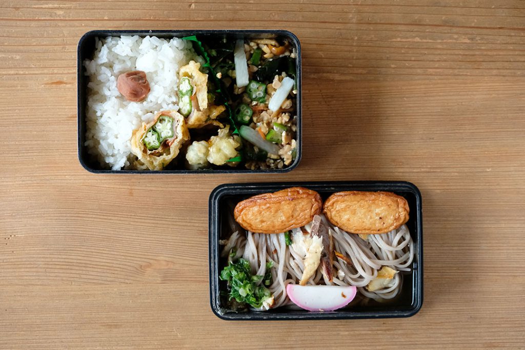 「顔」つながりで、こちらはアフター担当坂元さんのお弁当。「鯖節の田舎そば」、さつま揚げと鯖の塩焼きとかまぼこで顔をつくっています。これ、坂元さんに似てます 笑。指宿出身なので、特産品のオクラもたっぷりです。