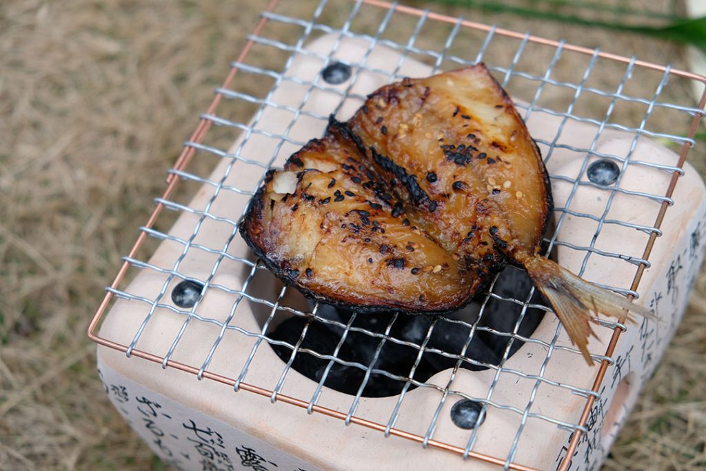 「小田原名物のアジの干物を七輪でですね……」