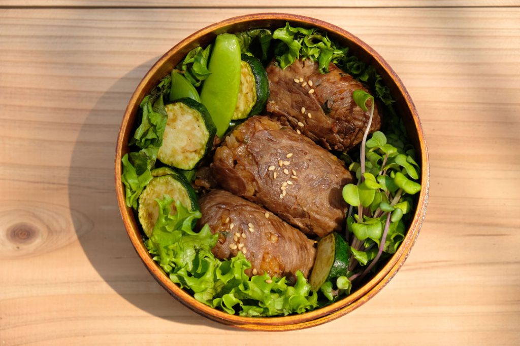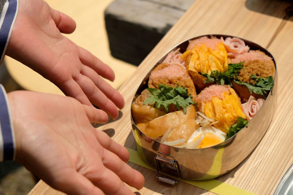 そんな上大川さんの、事実上の母ともいえるプランナー長田さんのお弁当は肉巻きおにぎり!安心じゃった!こんかか(母)に任せちょきゃー、ふて子に育つが!