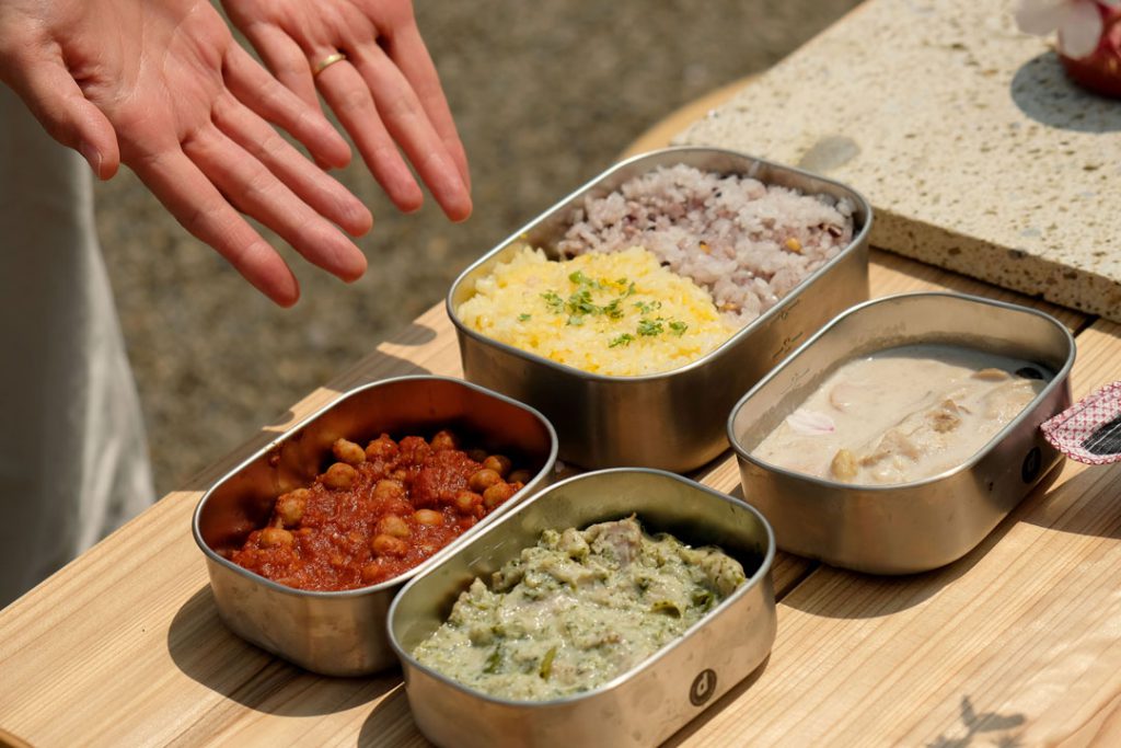 経理・福迫さんのお弁当は、お鍋みたいで可愛いことよね〜(ほっこり)。……ところで福迫さん、これはどれが初メシです?