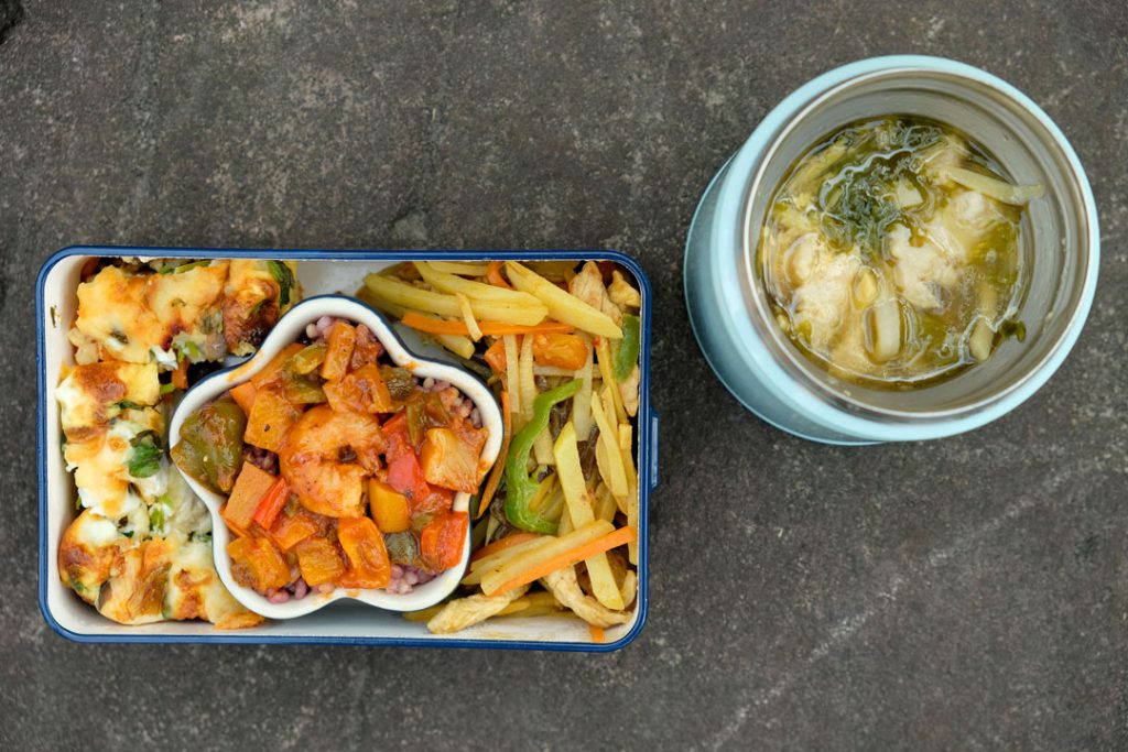 最近、すっかりお弁当女子のディレクター・上大川さんは、リゾットにジャーサラダにオートミールという、ヘルシー志向の丸の内レディ(偏見)みたいなお弁当。