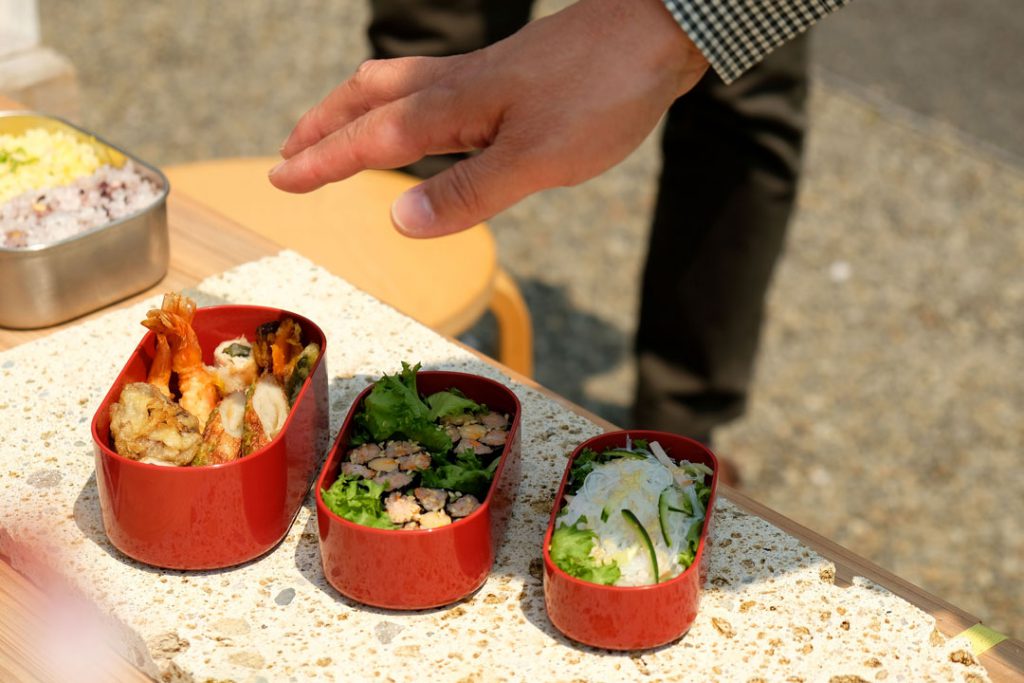 さ、全部で17のお弁当が出揃ったところで、いよいよ審査開始!いつもはお弁当の写真を使って別日に審査するんですが、今回はせっかくの屋外開催。審査もリアルタイムの