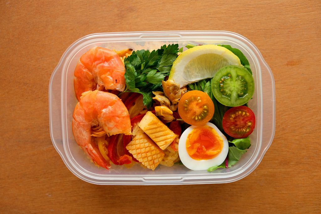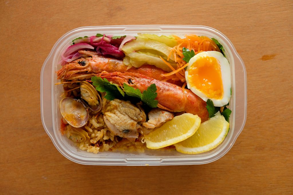 「タッパーからチラ見え!幸せのパエリア弁当」