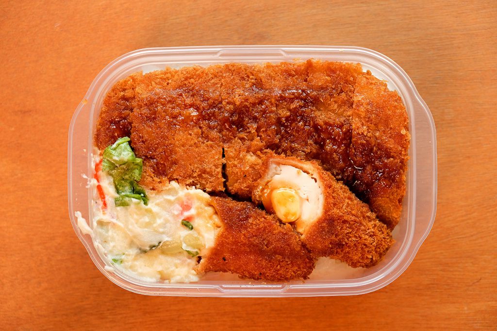 大胆な方がタッパーっぽいって言っても、これは大胆すぎでしょ!白飯の上にチキンカツとポテトサラダみっちりって。