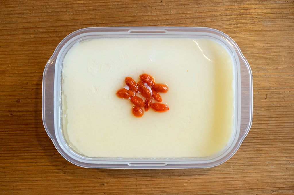 「タッパーに流し込めば、あとは待つだけ。」