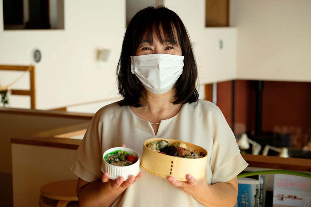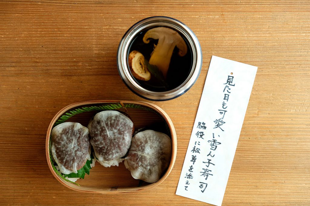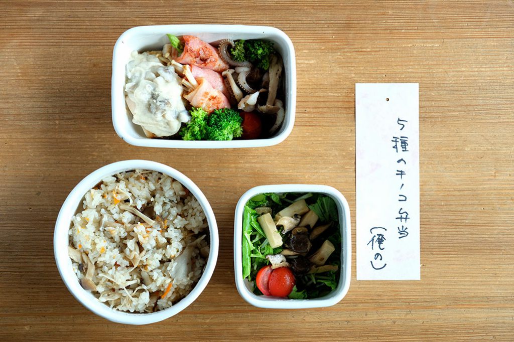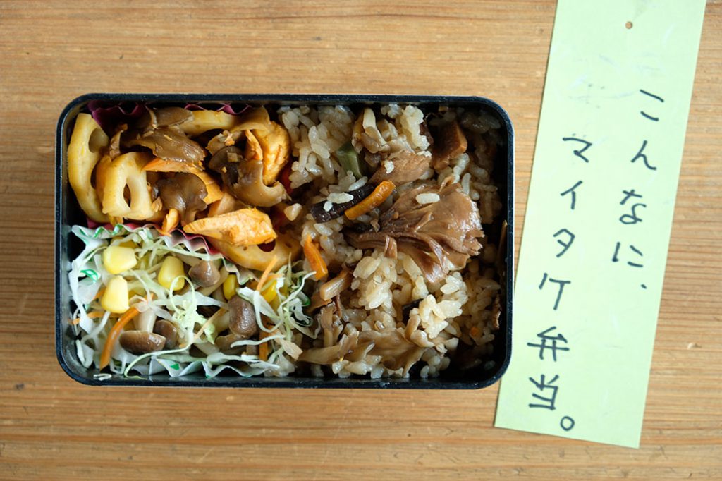 「ほら、舞茸が知らないうちに生えてきて。舞茸こんなに蒔(ま)いたっけ?弁当です」