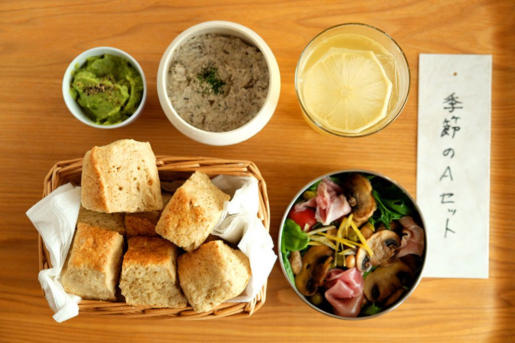 横にあるのはマッシュルームと生ハムのサラダ。メインはきのこのペーストで、スコーンにつけて食べるんだそう。なかなかの変化球ですぞ。美味しそうだけど!