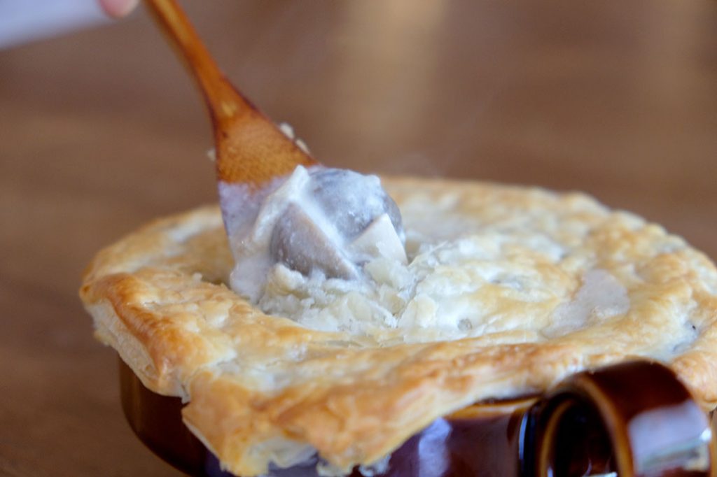 「パイ包みに挑戦したんですよ。ほら!湯気が出てアツアツで美味しそうでしょ〜」