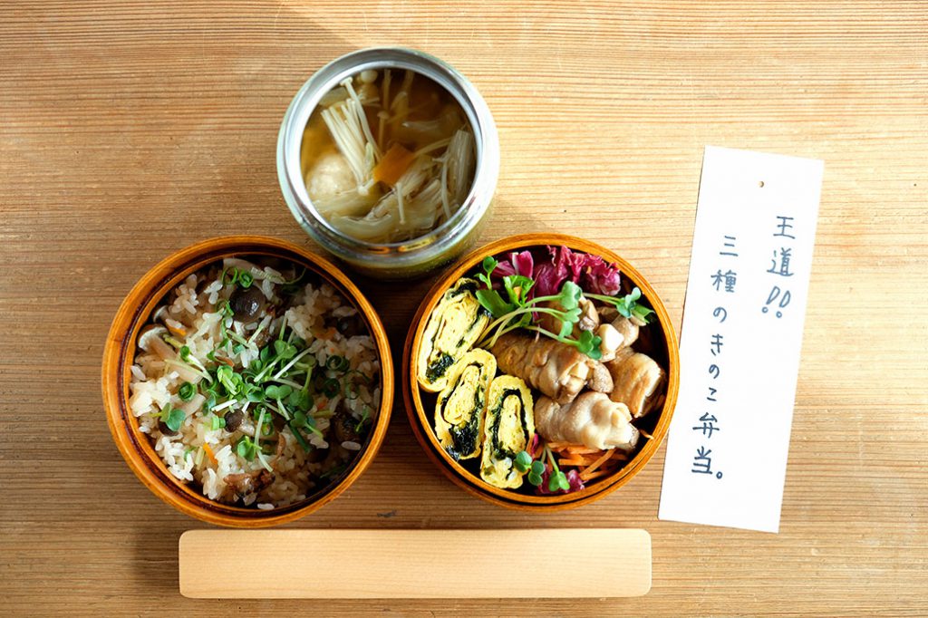 ちなみにお弁当のタイトル「キノコ きのこ キノコ」。