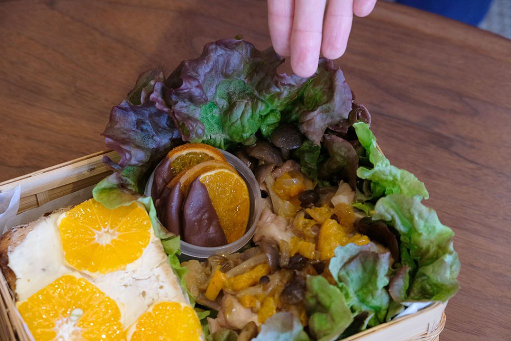 「今回は香りを楽しむためのお弁当をつくりました!メインはマリネ(写真上)です!」