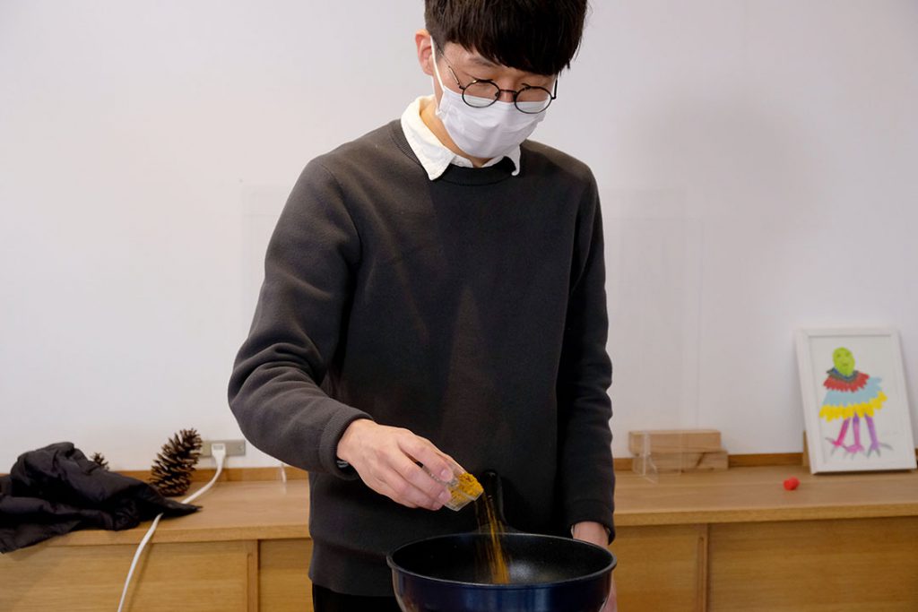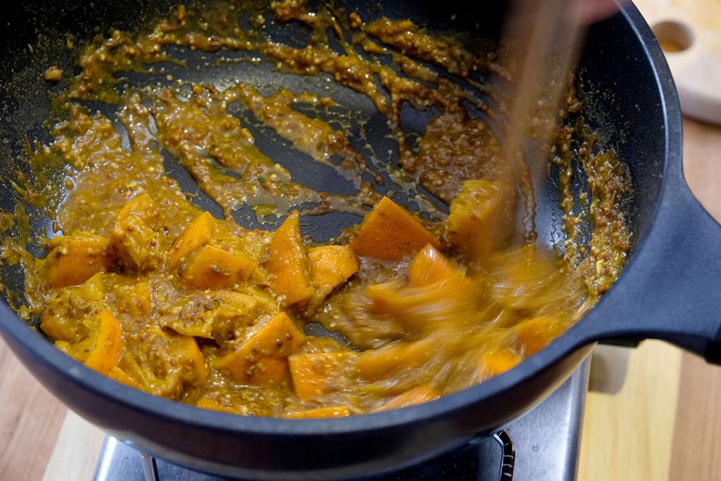 「かき混ぜます!水分飛ばします!」