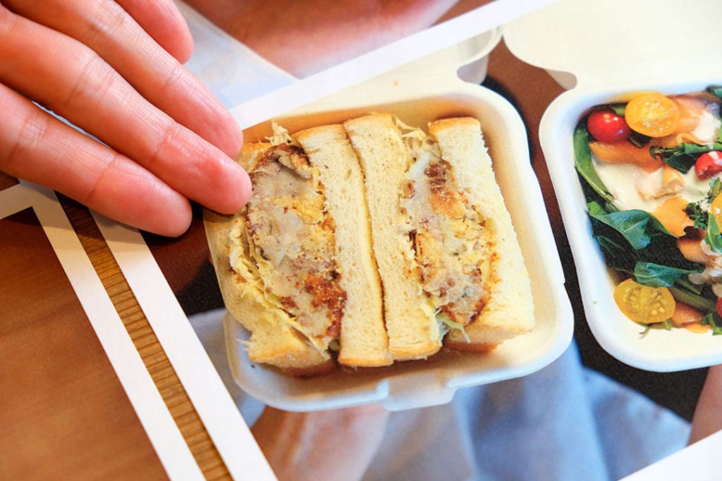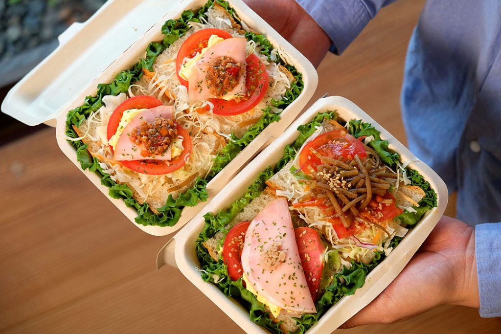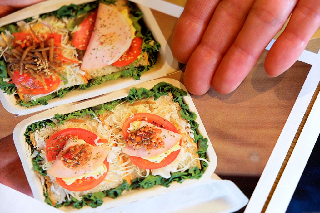 「中身が見えるオープンサンドです。きんぴらとハムとたまごサラダと……」