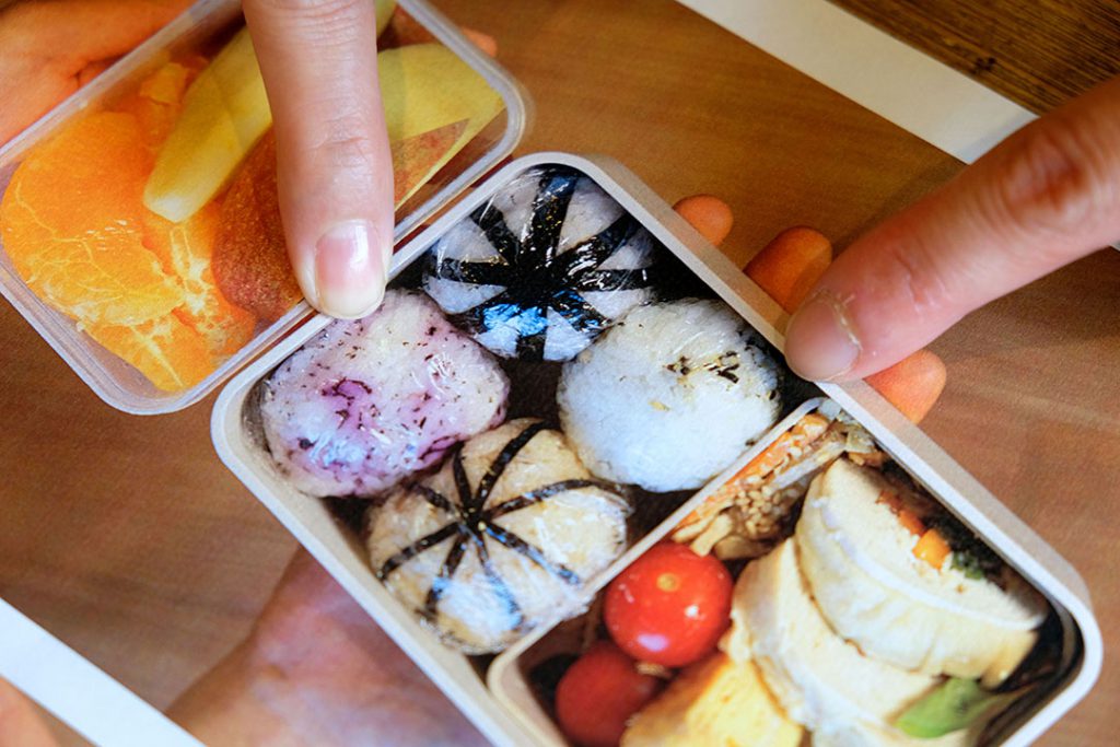 「おにぎりにのりを巻いてるんですけど、この巻き方は母が、運動会とか特別なときのお弁当でやってくれてたのを真似してみました」