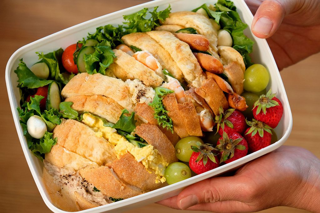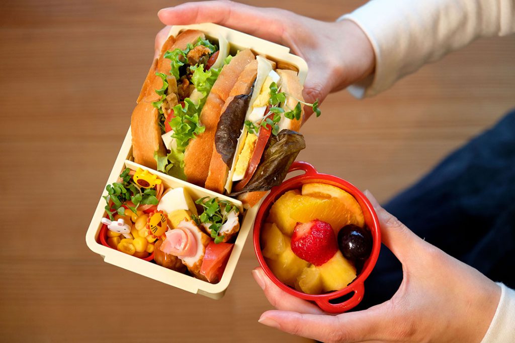 子どもも一緒だったら……と考えて、真ん中にはたまごサンドとフルーツサンドも入れてみました!」