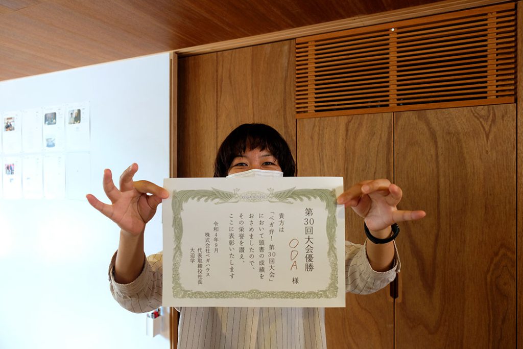 それでは取締役兼プランナーの長田より、表彰状の授与です。おめでとう〜!