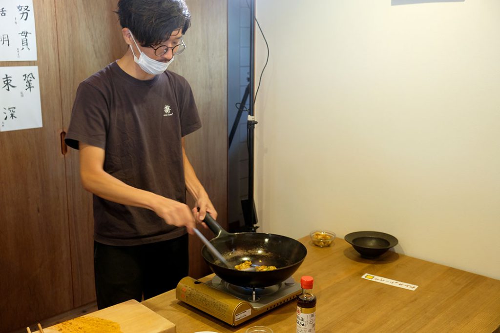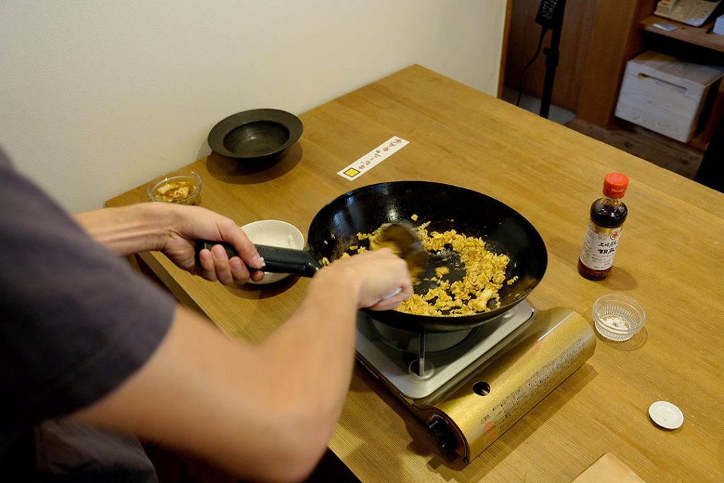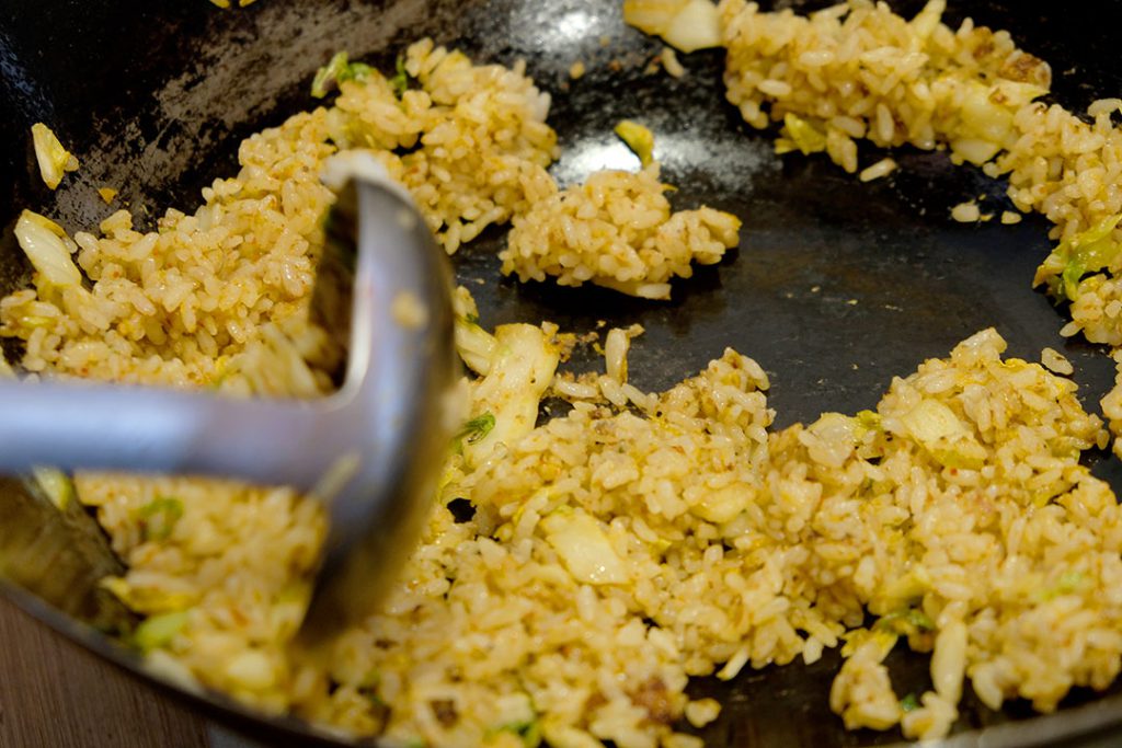 「白飯と合わせて一気に炒める!